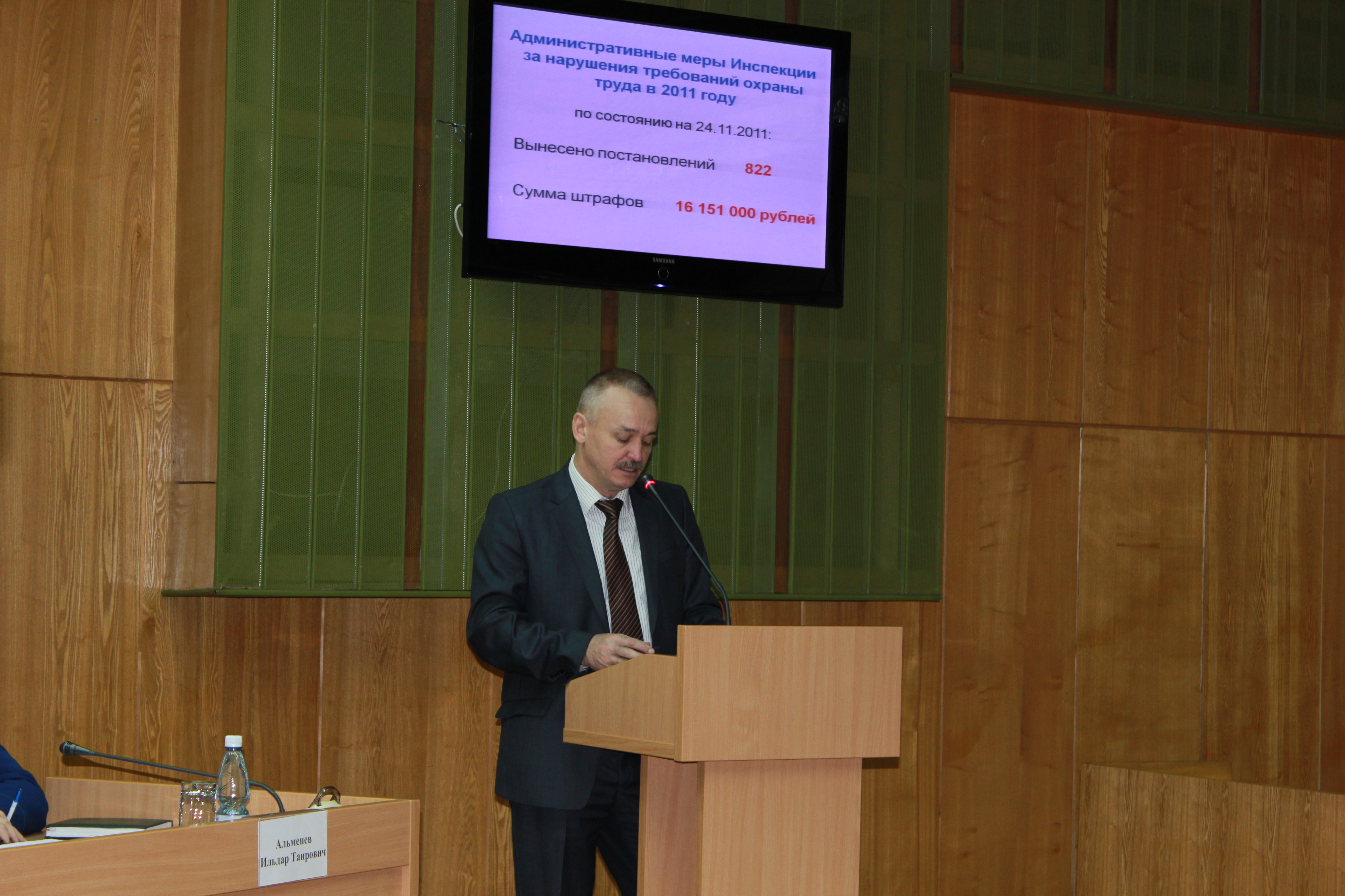 На совещании с основным докладом выступил заместитель начальника Инспекции государственного строительного надзора Республики Татарстан Ильфарт Сафиуллин. Как отметил заместитель начальника Инспекции, в целом, в Татарстане наблюдается отрицательная динамика соблюдения охраны труда на стройплощадках. Если сравнивать показатели с аналогичным периодом 2010 года, в текущем году возросла сумма штрафов с 10 миллиона 705 тыс. руб. до 16 миллионов 151 тыс.руб.