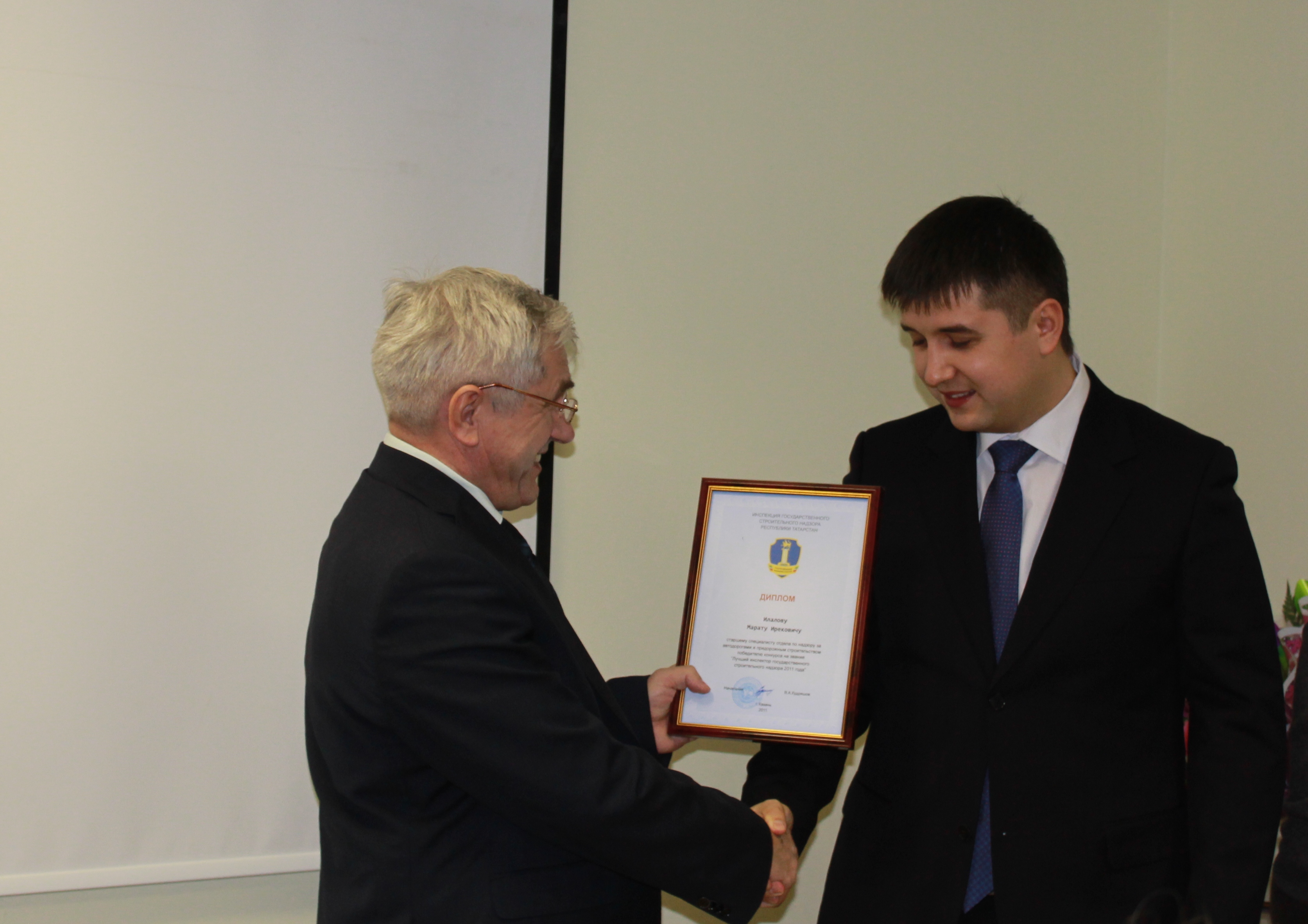По итогам 2011 года четыре победителя конкурса на звание «Лучший инспектор государственного строительного надзора Республики Татарстан» награждены дипломами и премиями, их фамилии выгравированы на памятном кубке Инспекции ГСН РТ, остальные участники поощрены Благодарственными письмами и премиями. Комиссия, состоящая из заместителей начальника Инспекции, руководителей территориальных органов и начальников отделов, единогласно признала победителями конкурса старшего специалиста отдела по надзору за автодорогами и придорожным строительством Территориального органа по надзору за проведением экспертиз, обследований и испытаний Марата Илалова, консультанта Закамского территориального органа Елену Нифонтову, консультанта Северо-Восточного территориального органа Елену Рахову, консультанта Северо-Западного территориального органа Светлану Миргалиеву.