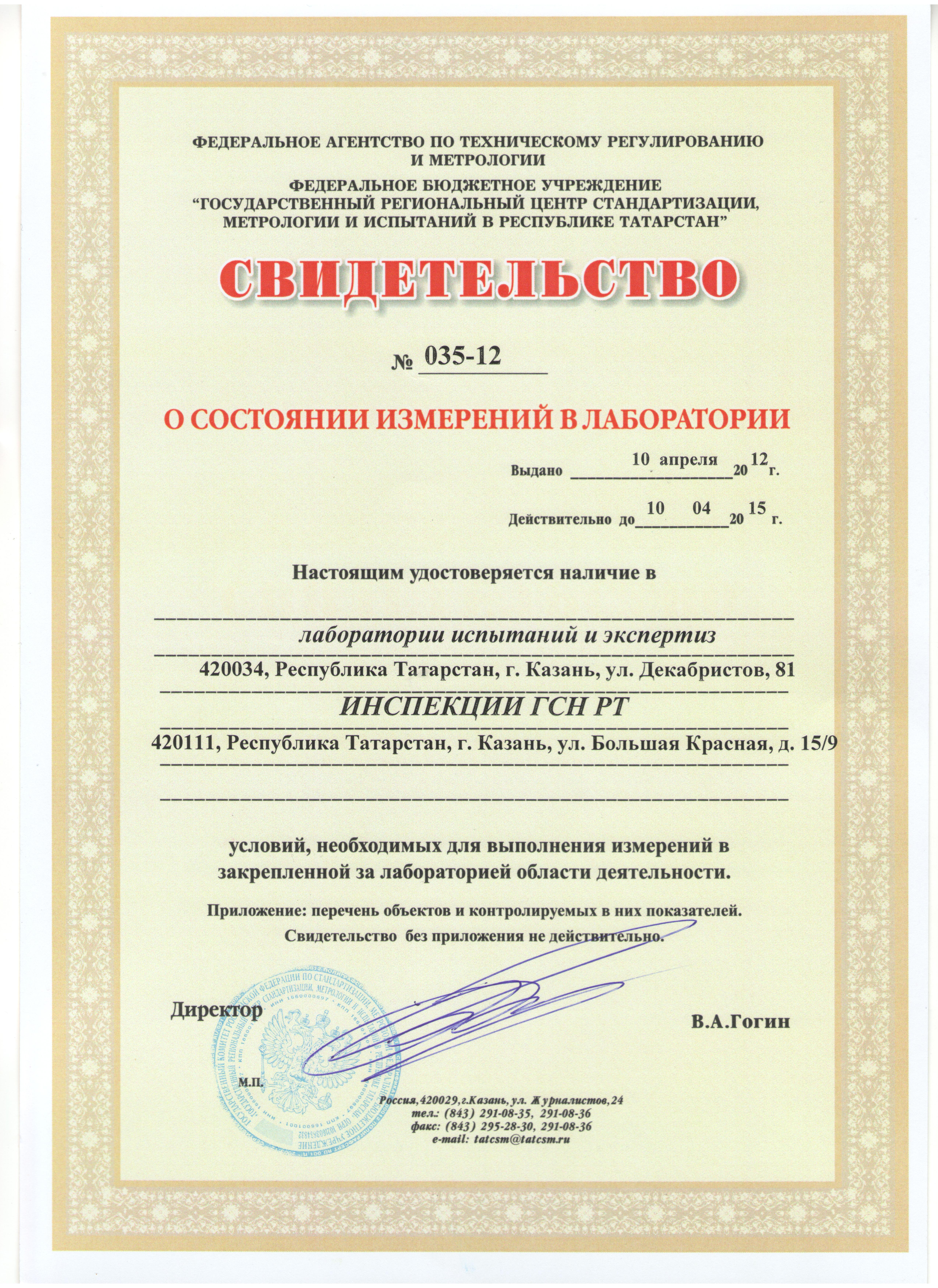 Лаборатория Инспекции государственного строительного надзора Республики Татарстан прошла аттестацию сроком на 3 года, включающую всестороннюю проверку соответствия работы лаборатории нормативным документам, проверку показателей каждого прибора, условий проведения испытаний, знаний, компетенций и квалификации персонала, наличия нормативных документов и методического обеспечения.