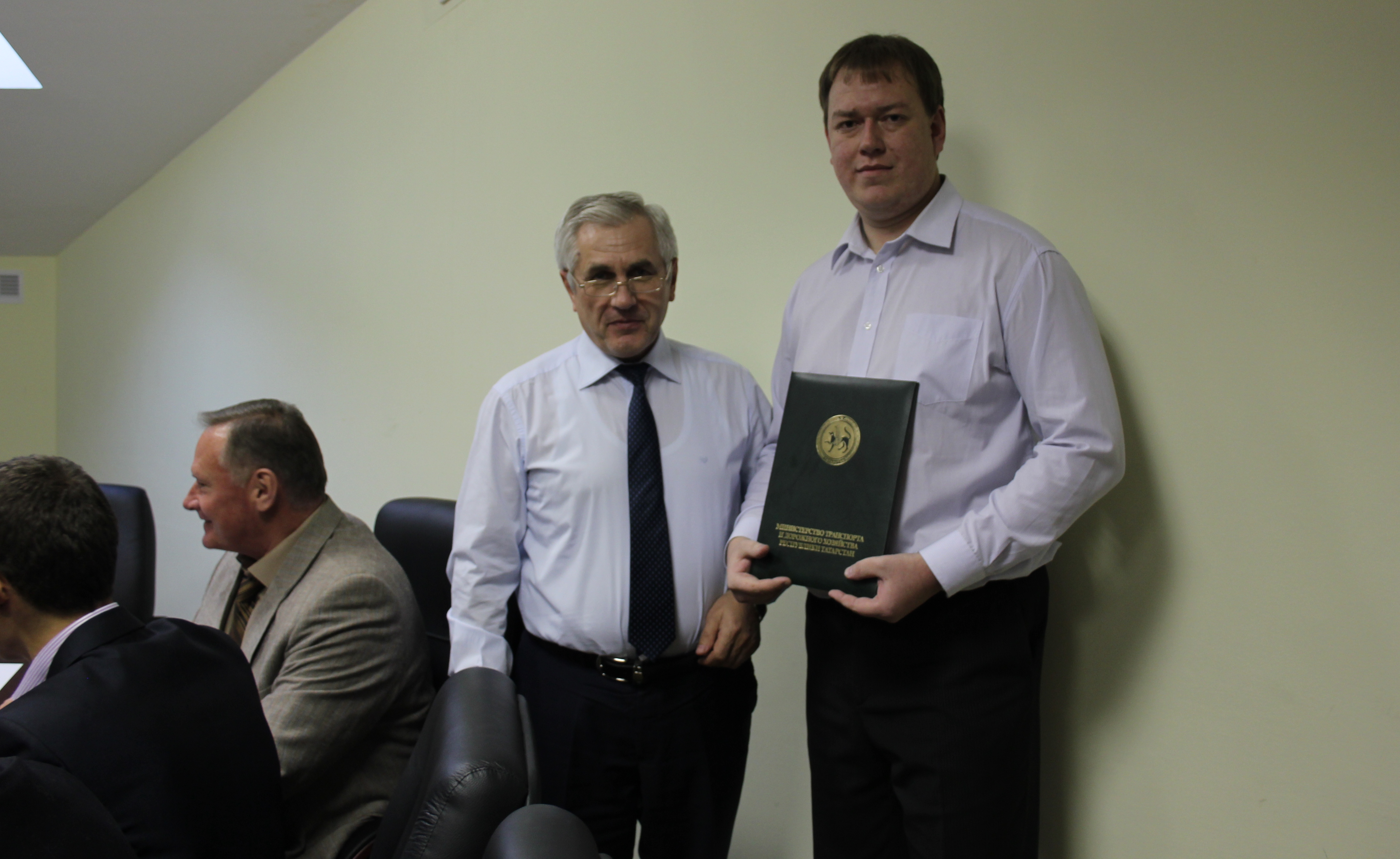Вчера 28 ноября 2012 года за добросовестный плодотворный труд и эффективное содействие развитию транспортного комплекса Республики Татарстан Почётной грамотой Министерства транспорта и дорожного хозяйства Республики Татарстан был награждён старший специалист Территориального органа по надзору за автодорогами и придорожным строительством Инспекции Степанов Артём Юрьевич, Благодарность Министра транспорта и дорожного хозяйства Республики Татарстан была объявлена старшему специалисту Территориального органа по надзору за автодорогами и придорожным строительством Инспекции Вафину Айдару Габдульнуровичу.