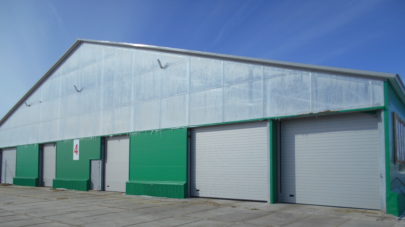 Общая площадь здания молочного комплекса – 12219,5 кв. метров. В ходе работ в качестве материалов несущих и ограждающих конструкций были использованы навесные сэндвич-панели. Тип фундамента – буронабивные сваи. Тип кровли – скатная.