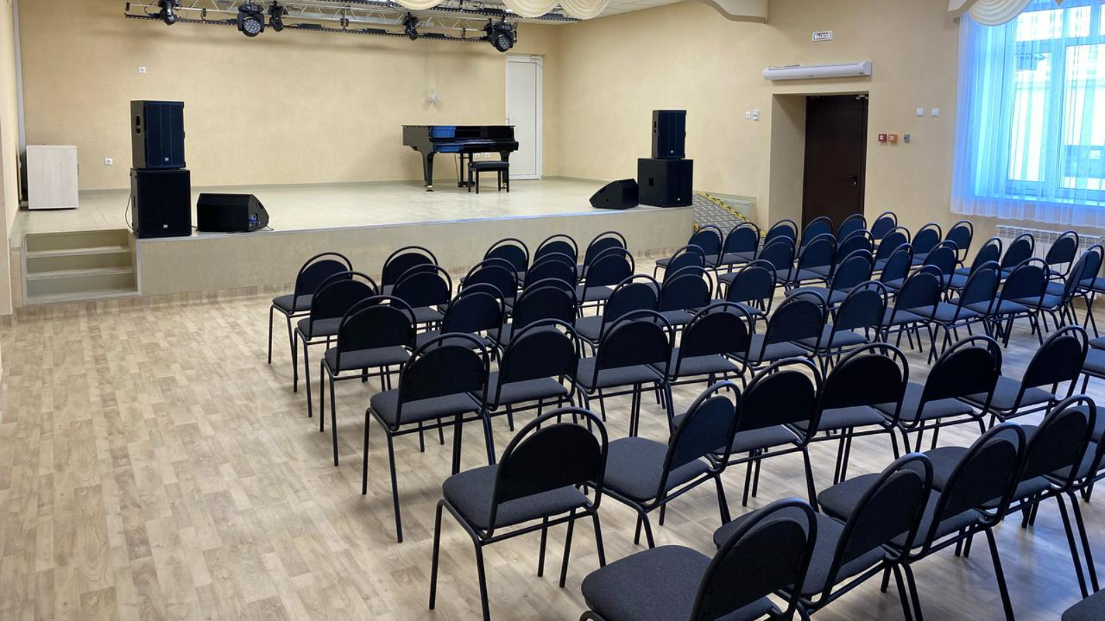 На первом этаже размещены: концертный зал на 84 места с эстрадой, артистическая, кладовая декорация, зал для занятий танцами № 1, раздевалки для мальчиков и девочек с уборными и душевыми, комната приёма пищи, класс для занятий хора, кабинет директора, кабинет секретаря, методический кабинет, пост охраны, гардероб, вестибюль, электрощитовая, ИТП, санузлы (в том числе для MГН), ПУИ, помещение личной гигиены, коридор.