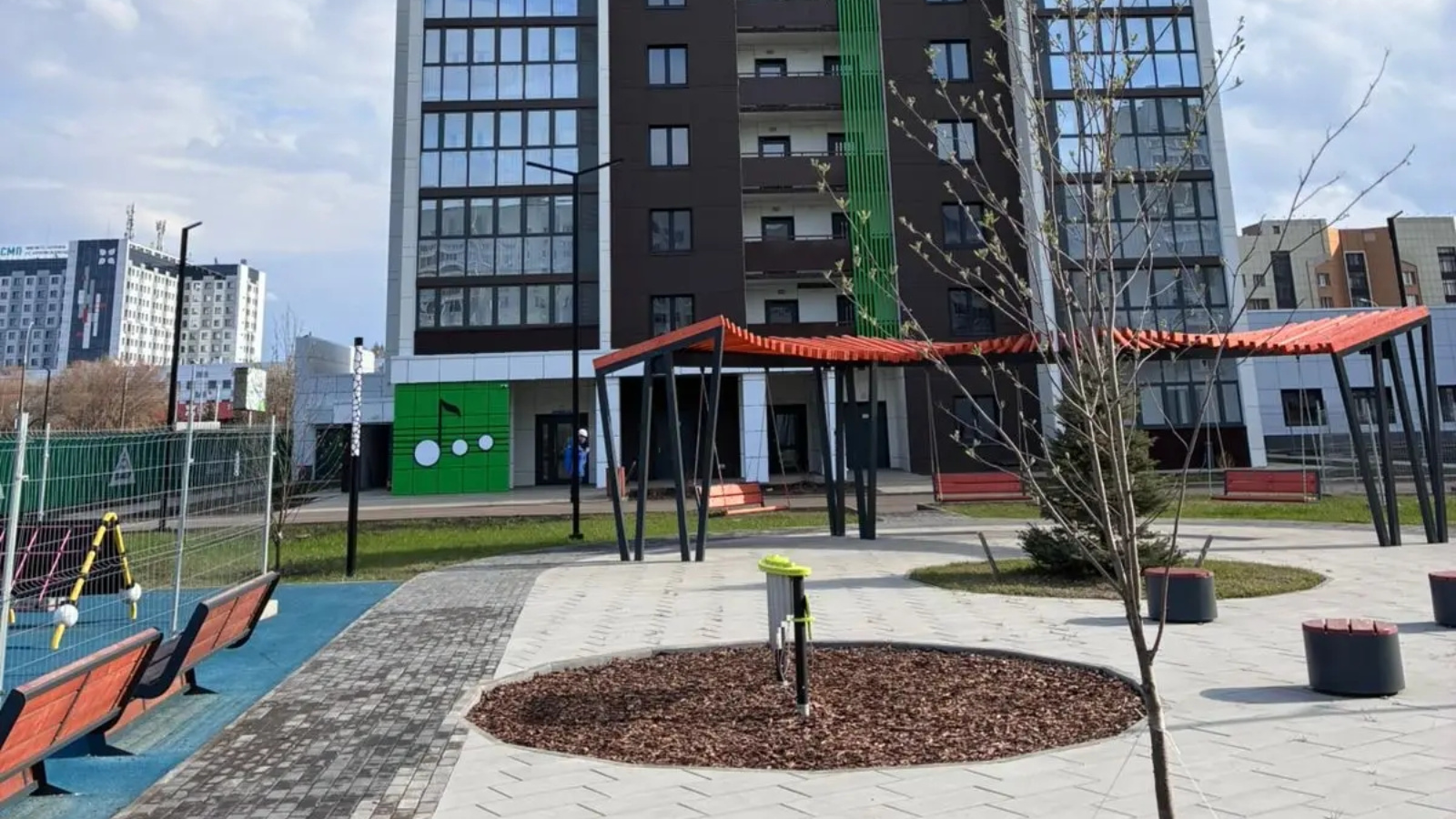В новом доме с наружными инженерными сетями – 18 этажей. Общая площадь 173-х квартир составляет 8490,50 кв. метров. Придомовая территория благоустроена, оборудована детской площадкой.