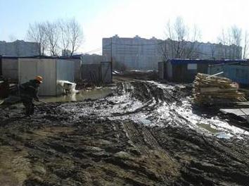 На выезде со стройплощадки отсутствуют пункты мойки колес автотранспорта с оборотным водоснабжением.