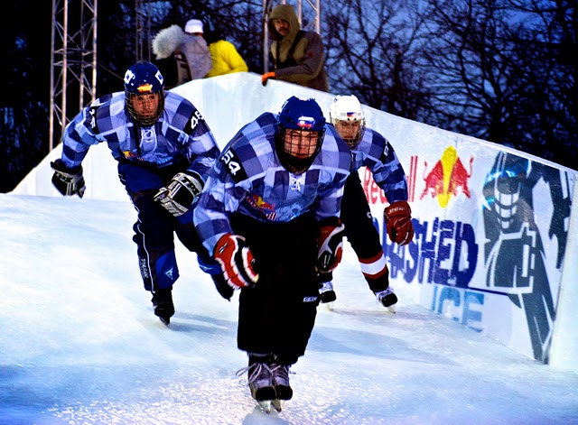 Скоростной спуск на коньках – это новый вид спорта, сочетающий в себе черты шорт-трека, лыжного кросса и бенди, с той лишь разницей, что соревнования проходят в городской среде. Спортсмены в полной хоккейной амуниции стартуют в группах по четыре человека и совершают головокружительный спуск по ледяному желобу с препятствиями в виде уступов, трамплинов и крутых поворотов. Правила очень простые: кто первый доедет до конца трассы (неважно каким образом), тот и победил.