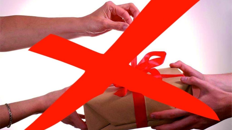 Алда көтелгән Яңа ел һәм раштуа бәйрәмнәре уңаеннан традицион рәвештә бүләкләр бирүне һәм алуны тыюны үтәүне тыю кирәклеген искә төшерәбез.