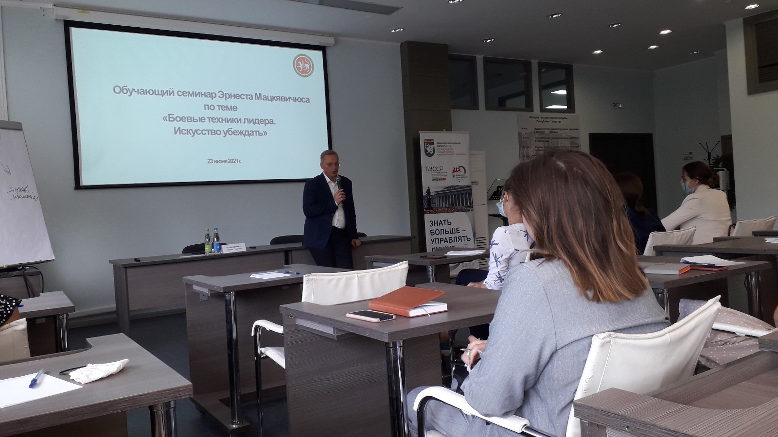 23 июньдә Казанда «Россия 1» телеканалында «Вести» программасын һәм «Разговор с Владимиром Путиным» программасын алып баручы Эрнест Мацкявичюс катнашында семинар-уку узды. Популяр журналист «Лидерның көрәшчән техникалары. Ышандыру сәнгате» темасы белән чыгыш ясады.