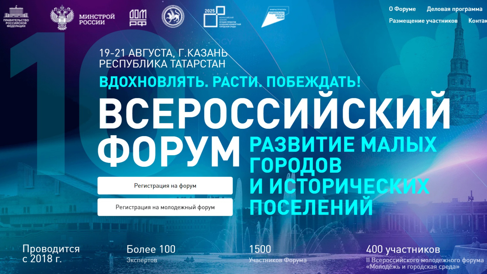 2025 елда форум кунакларын кабул итәчәк Татарстан Республикасы иҗтимагый киңлекләрне үстерү буенча төбәк программасының 10 еллыгын билгеләп үтә. Республикада Татарстан Рәисе Рөстәм Миңнеханов ярдәме белән эшләнгән алымнар 2017 елда эшли башлаган «Уңайлы шәһәр мохитен формалаштыру» өстенлекле проектының һәм уңайлы шәһәр мохитен булдыруның иң яхшы проектлары Бөтенроссия конкурсының нигезенә салынды.